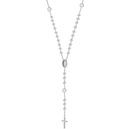 Sterling Silver Beaded Rosary & Cross Necklace