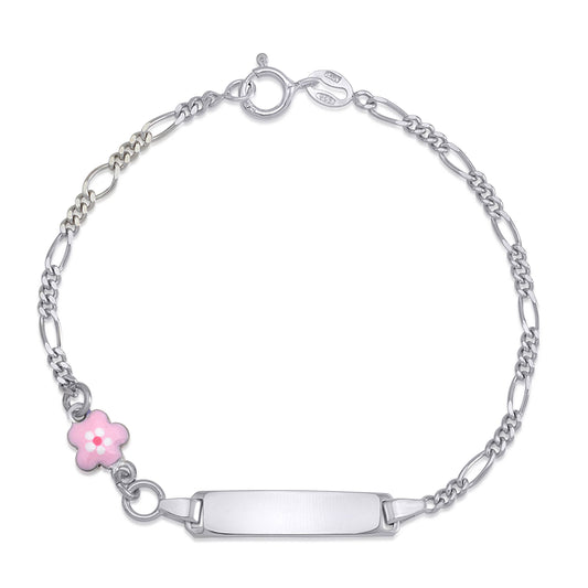 Sterling Silver Girls ID Bracelet with Pink Flower