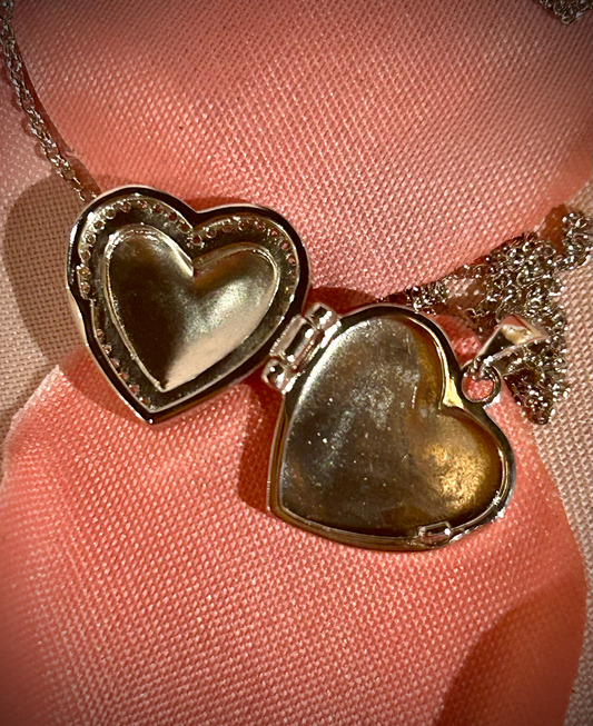 Sterling Silver Pink CZ Heart Girls Locket