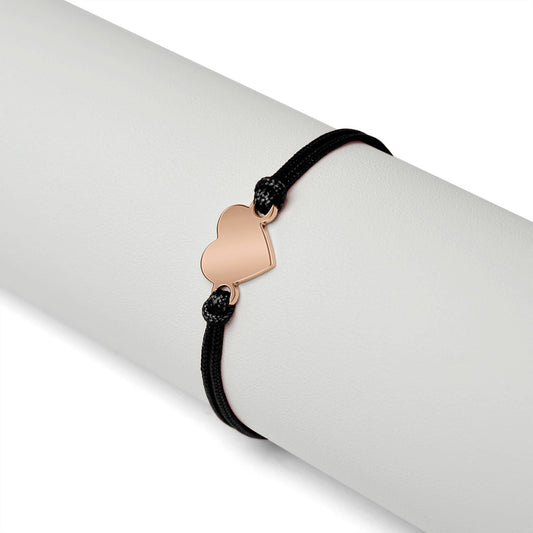 Adjustable Black Cord Heart Bracelet (Silver, Gold, Rose Gold)