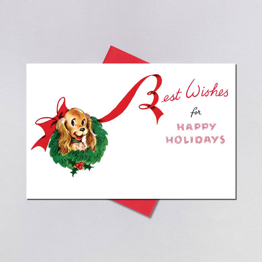 Dog at Window Retro Christmas Greeting Card