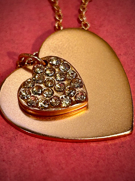 Silver, Gold, or Rose Gold Crystal Charm Double Swing Heart Necklace