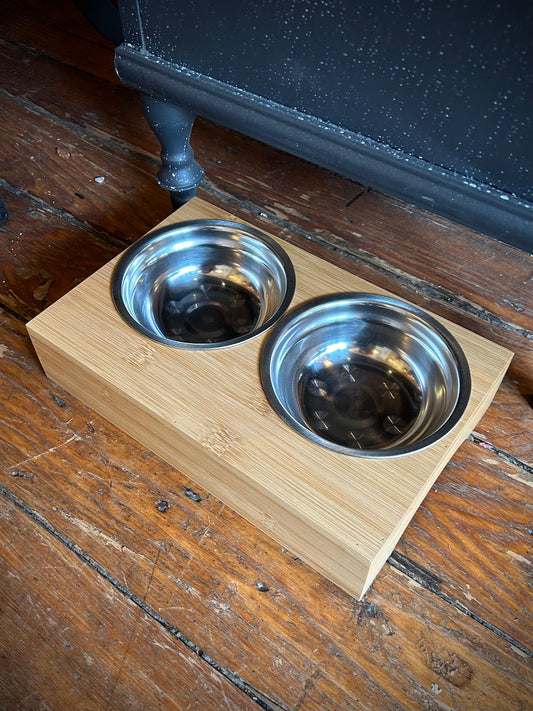 Bamboo Pet Bowl Stand with Bowls