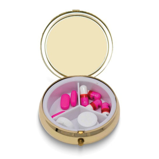 Gold-tone Round Pillbox with Mirror