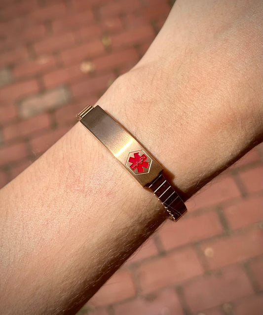 Ladies Rose Gold Stainless Steel Medilog™ ID Bracelet with Compartment Plaque & Expansion Band