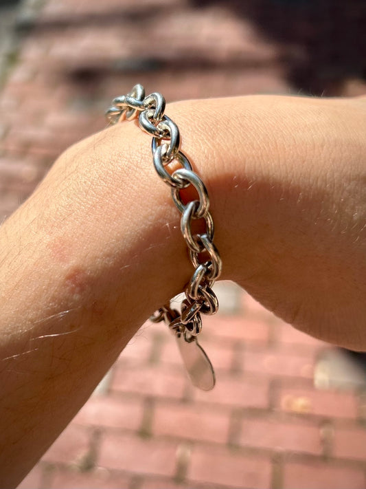 Sterling Silver Chain Bracelet with Heart Tag