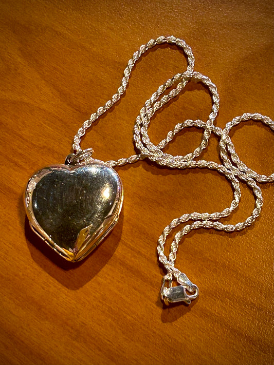 Sterling Silver 4 Panel Heart Photo Locket Necklace