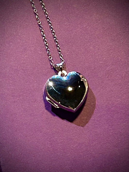 Sterling Silver Rhodium Plated Heart Locket Necklace