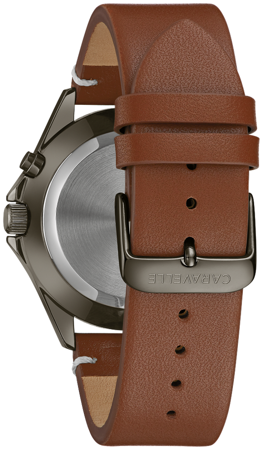 Caravelle by Bulova Classic Gunmetal & Brown Leather, Olive Dial Watch