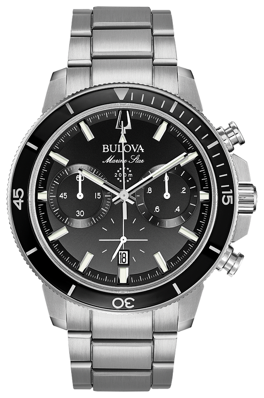 Bulova Marine Star Stainless Steel & Black Dial Chronograph Watch