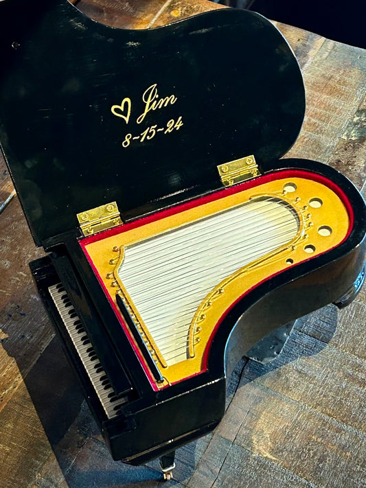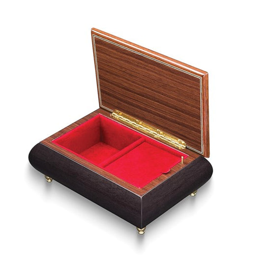 Handcrafted High Gloss Finish Black Rose Inlay Wooden Music Box Made in Italy