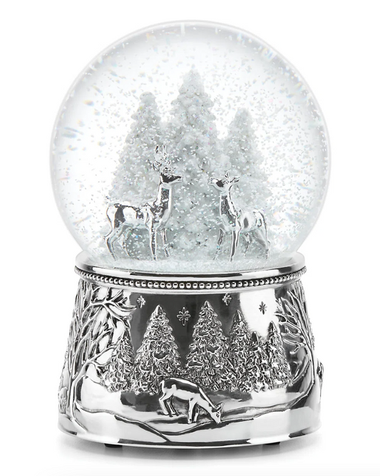 Reed & Barton North Pole Bound Reindeer Silver Musical Snow Globe