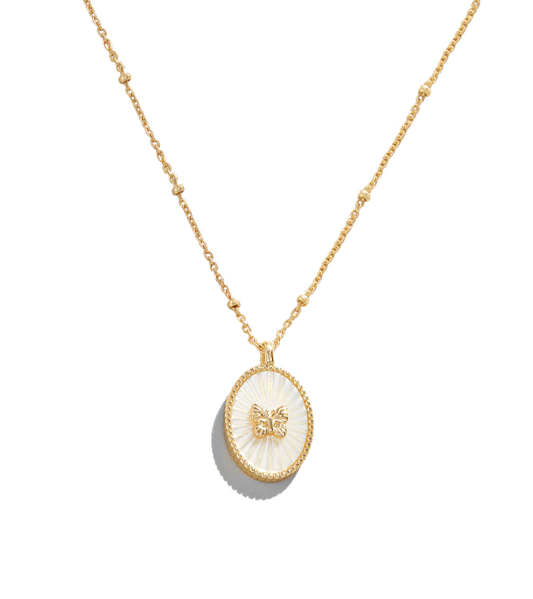 Gold Vermeil Mini Butterfly Mother of Pearl Oval Pendant Necklace