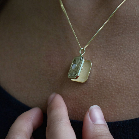 Shining Gold Vermeil & Mother of Pearl Book Locket Necklace