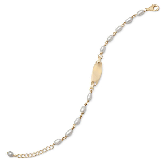 14 Karat Gold Plated Sterling Silver & Freshwater Pearl Kids ID Bracelet