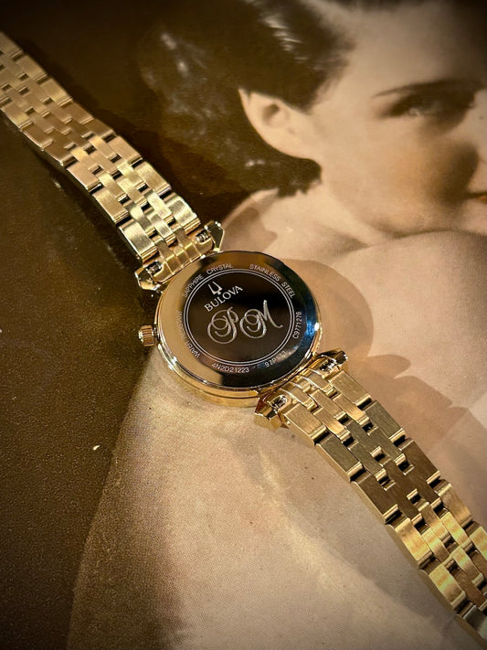 Bulova Ladies Regatta Gold, Diamond & Black Mother of Pearl Watch