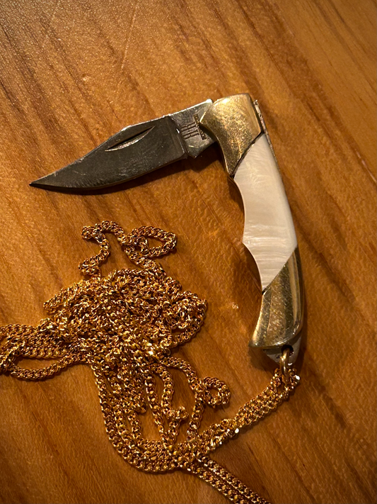 Mother of Pearl Handle Tiny Pocket Knife on Gold Chain Necklace