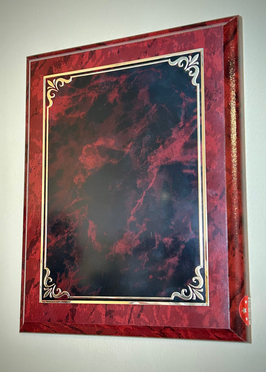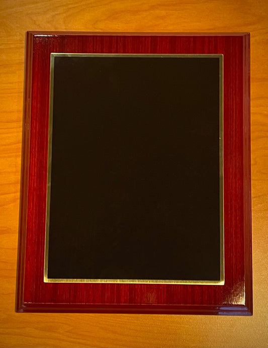 Hand Rubbed Cherry Finish Plaque with Black Gold Florentine Border Plate