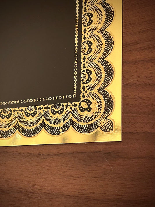 Rosewood High Gloss Scalloped Corners Plaque with Silver Florentine Border Black Plate