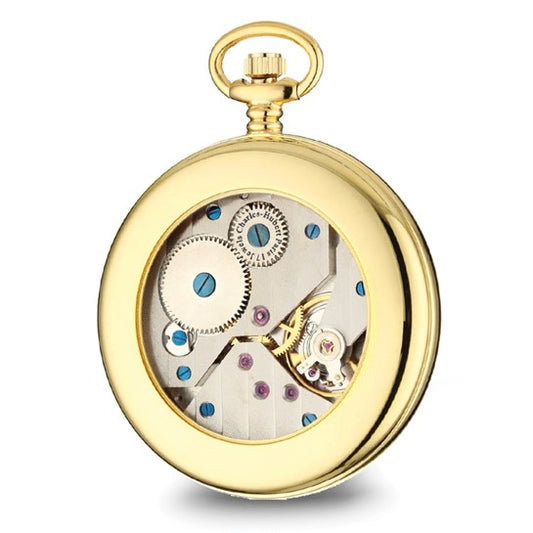 Charles Hubert Gold Open Face Mechanical Pocket Watch with Skeleton Back