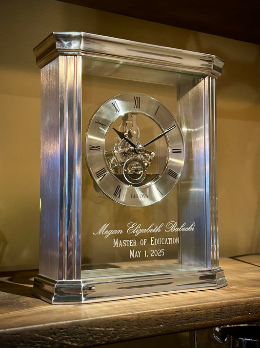 Bulova Cate Silver Skeleton Clock