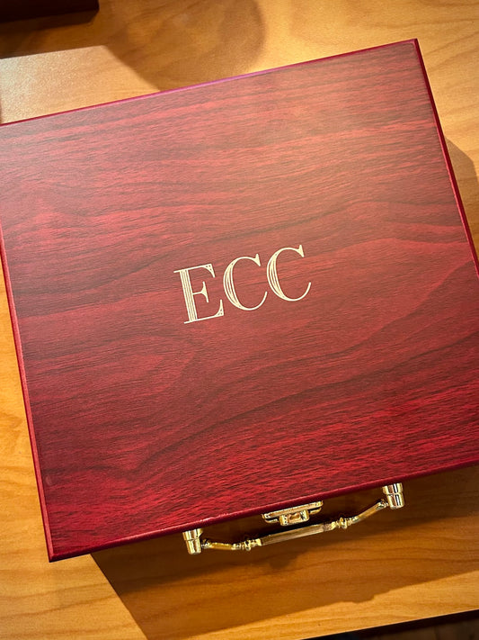Rosewood Finish Travel Box Poker Set with 100 Chips, Two Card Decks and 5 Dice