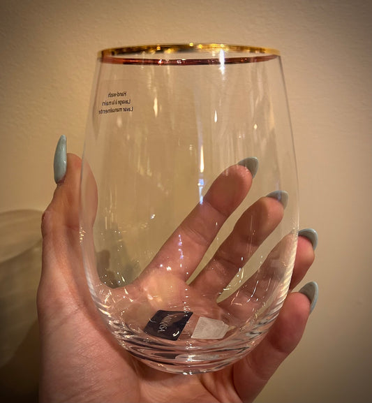 Mikasa Julie Gold Rim 19.75 oz Crystal Stemless Wine Glass
