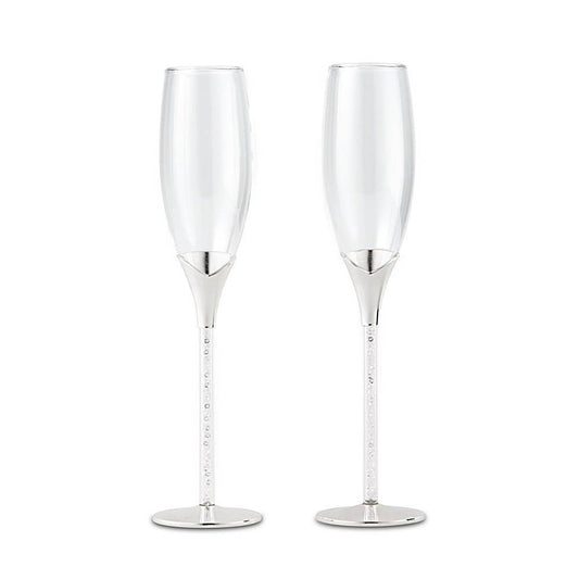Glass Stem with Gems Silver Champagne Toasting Flutes