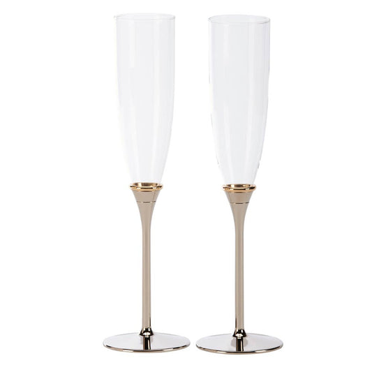 Gold Ring Band Silver Stem Champagne Toasting Flutes