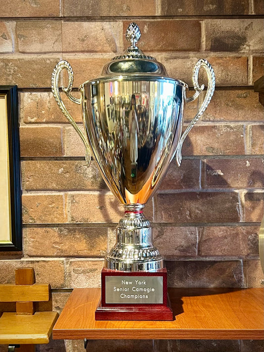 Crystal Trophy Cup with Silver Handles & Stem on Black Marble Base