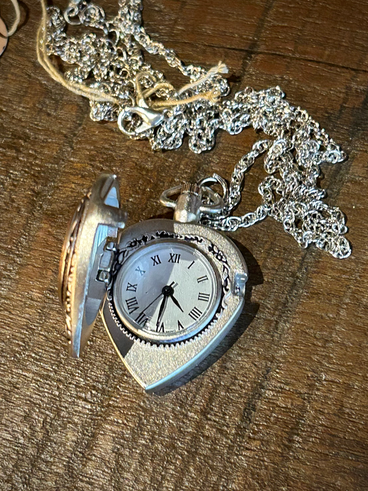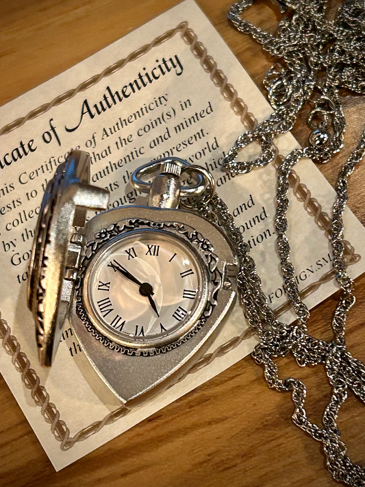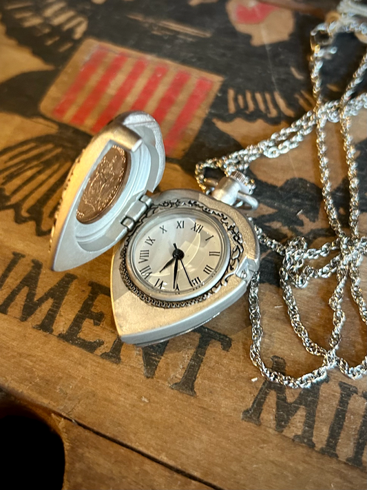 Hummingbird Penny Coin Heart Locket Pocket Watch Pendant