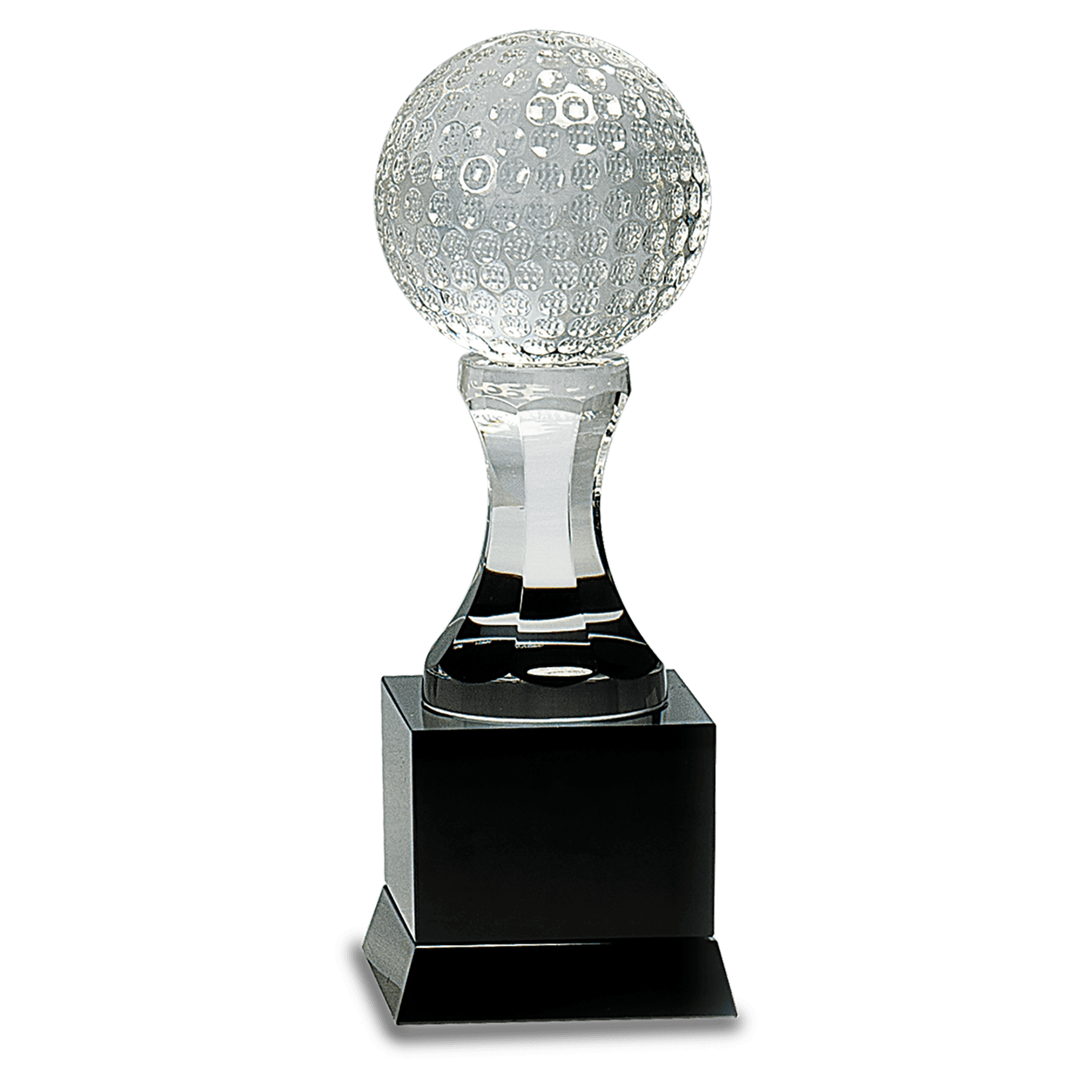 9" Crystal Golf Ball on Black Pedestal Base Trophy