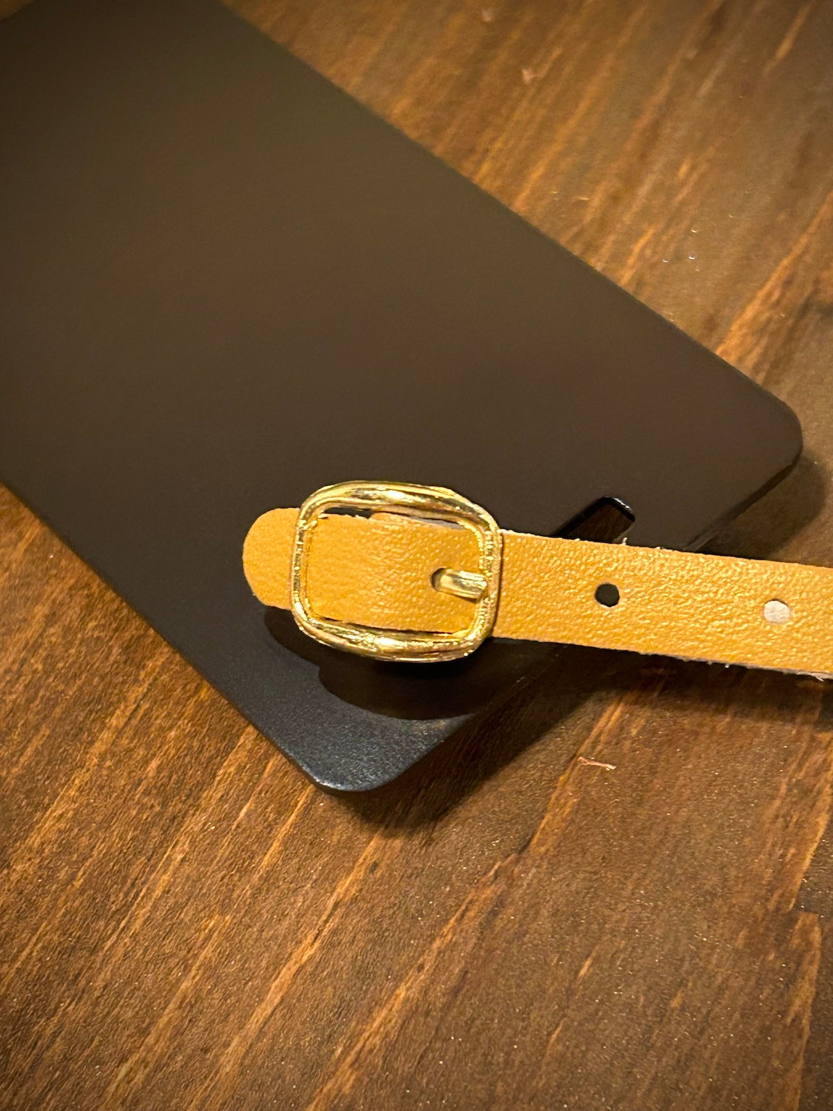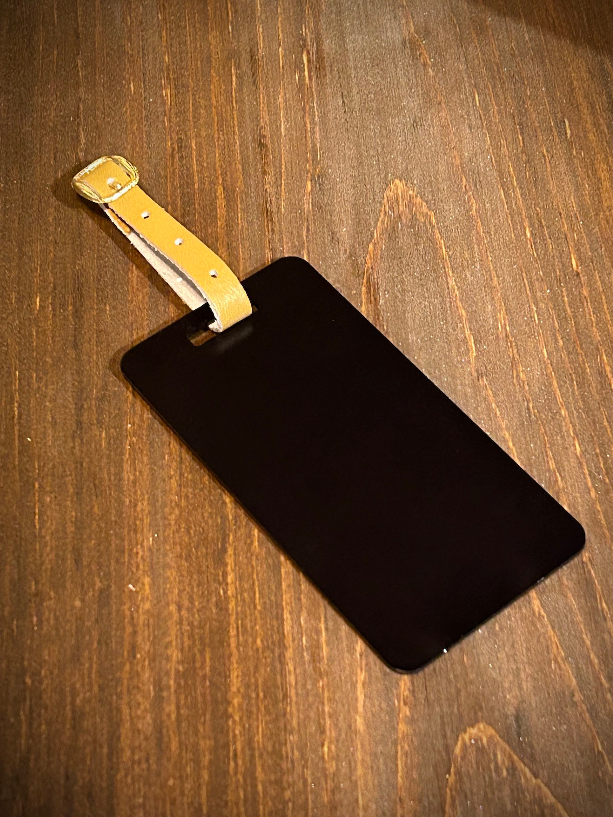 Black Anodized Aluminum Luggage Tag with Leather Strap