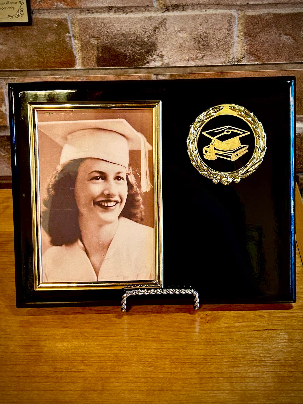 This grand black piano finish 8x10 (3/4" thick) plaque reflects the greatness of your grad's achievement. It is made of high quality solid teakwood, with a luscious black piano gloss finish, and has a felt back side and keyholes for hanging. The gold tone frame mounting allows for a prized 5x7 photograph to easily be slid in, and is matched by a gold tone wreath that can display an engraving of the school or institution's logo (contact us to add logo - otherwise it will come standard with the cap graphic.) Lastly, ample space is left below the wreath to engrave the achiever's name, class year, and anything else you would like to include.