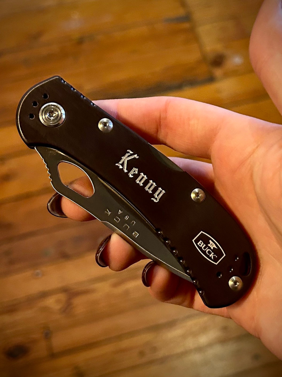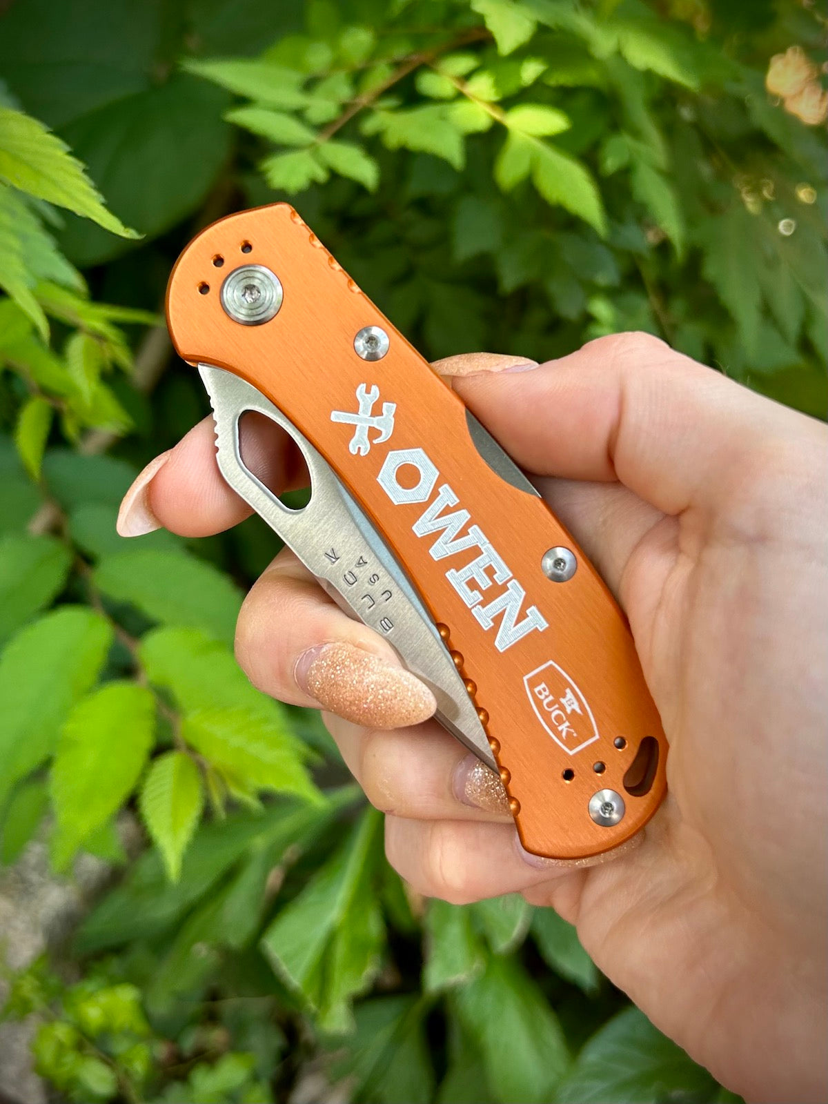 Both sides of the blade and the non-clip side of the handle (unless you would like the clip removed) are engravable. Please note where you would like your engravings in the "Note to Engraver" box below.