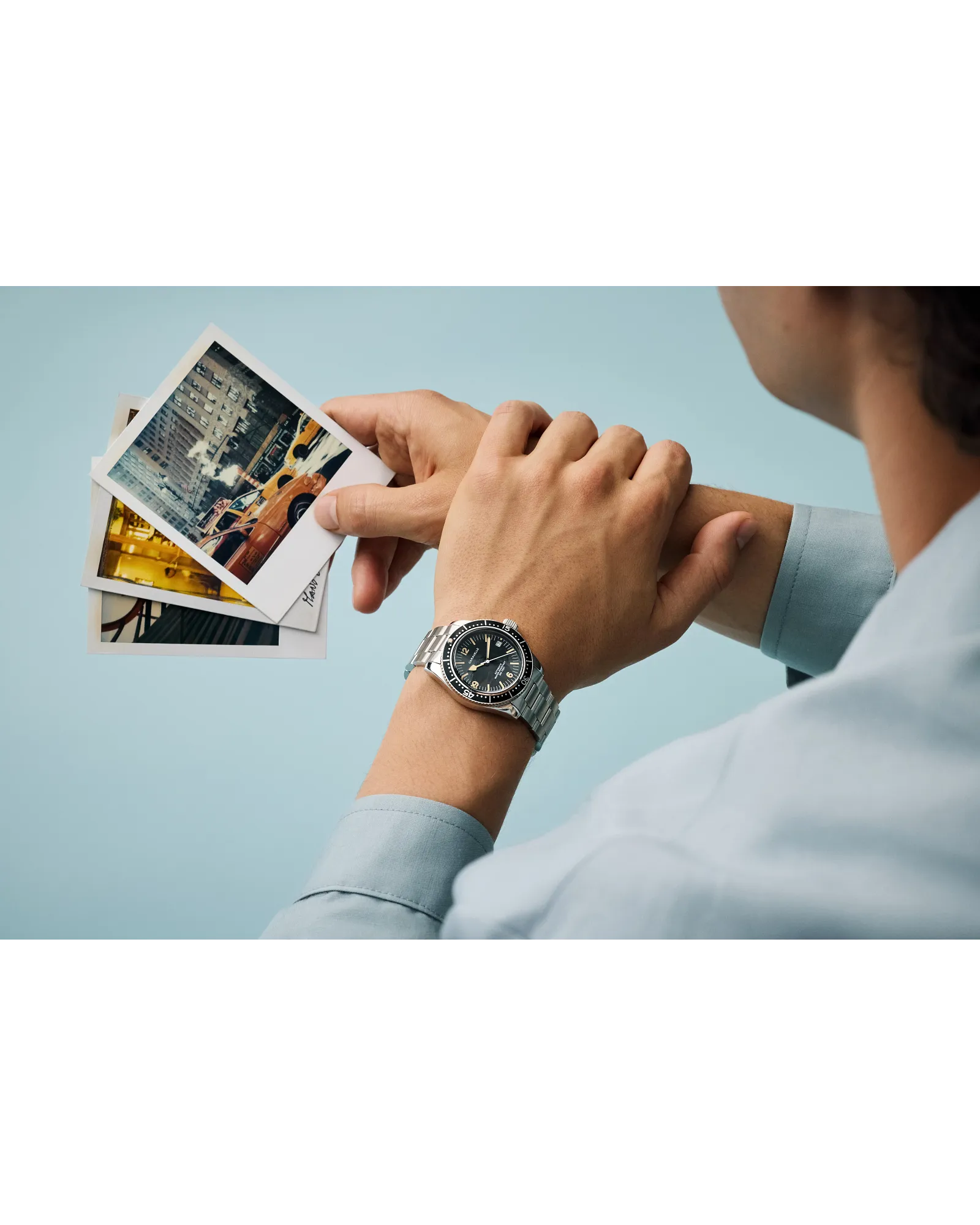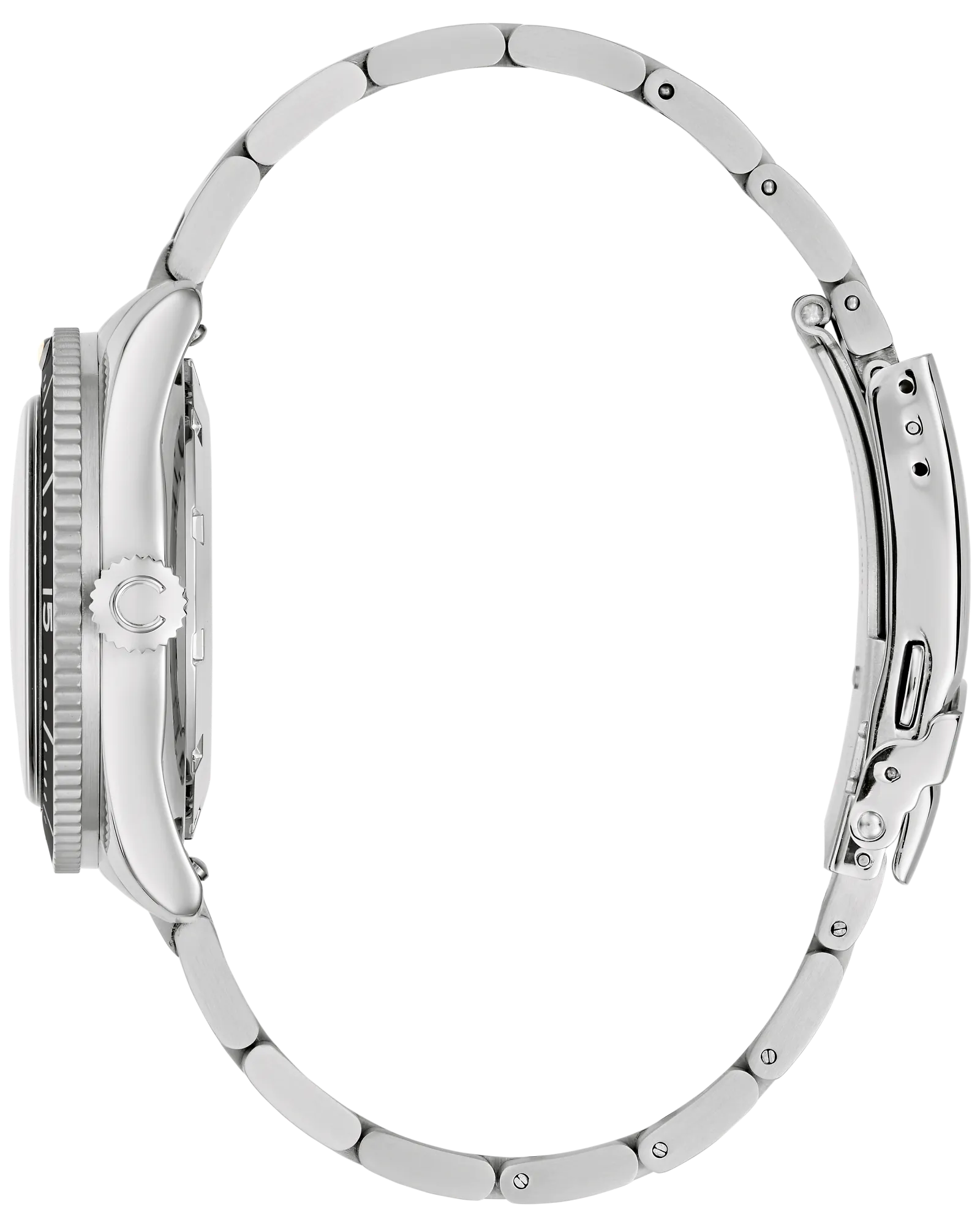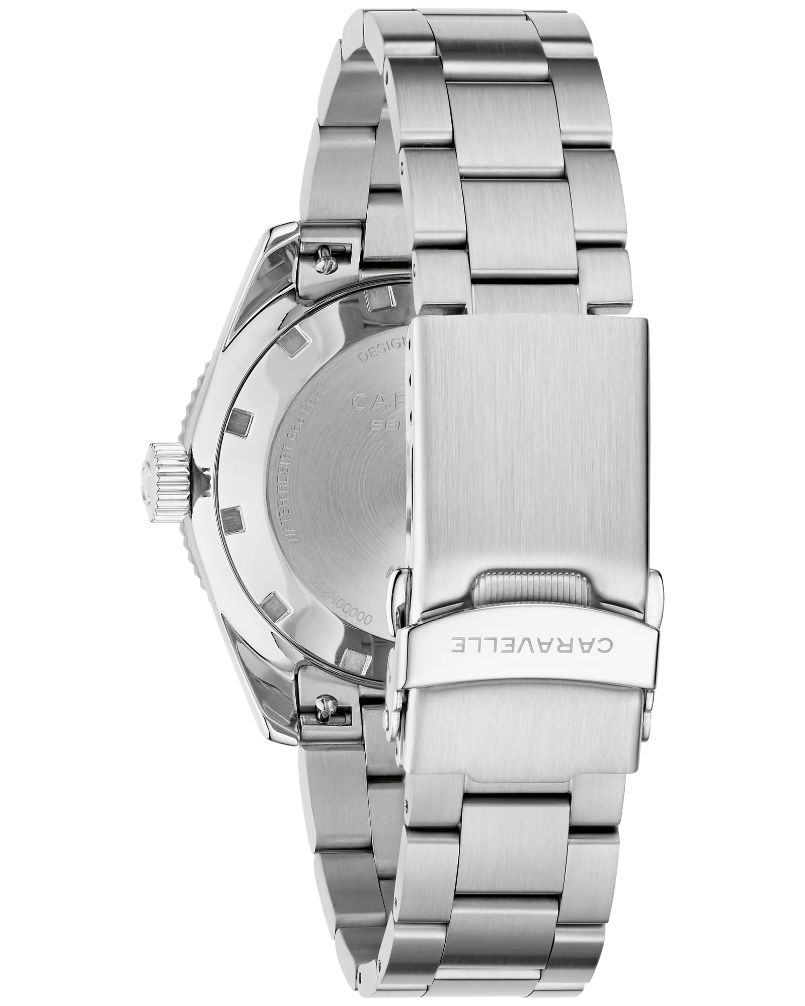 The return of an icon: The men’s Caravelle Sea Hunter is reborn for the modern age. Inspired by one of Caravelle’s most celebrated models, the new Caravelle Sea Hunter is sized for modern tastes at 39mm, with a case crafted from 316L stainless steel and echoing the sporting form of the original. Ensuring ideal legibility and functionality, a high-contrast black dial with a date display and luminescent hands and markers is complemented by a matching rotating 60-minute timing bezel. The Caravelle Sea Hunter is powered by a 21-jewel automatic movement with a power reserve of 42 hours. Paired with a 3-link stainless steel bracelet with a folding clasp and rated to 200m water resistance, this watch can go wherever you do so you can do whatever you want. Experience an icon remade with the men’s Caravelle Sea Hunter.