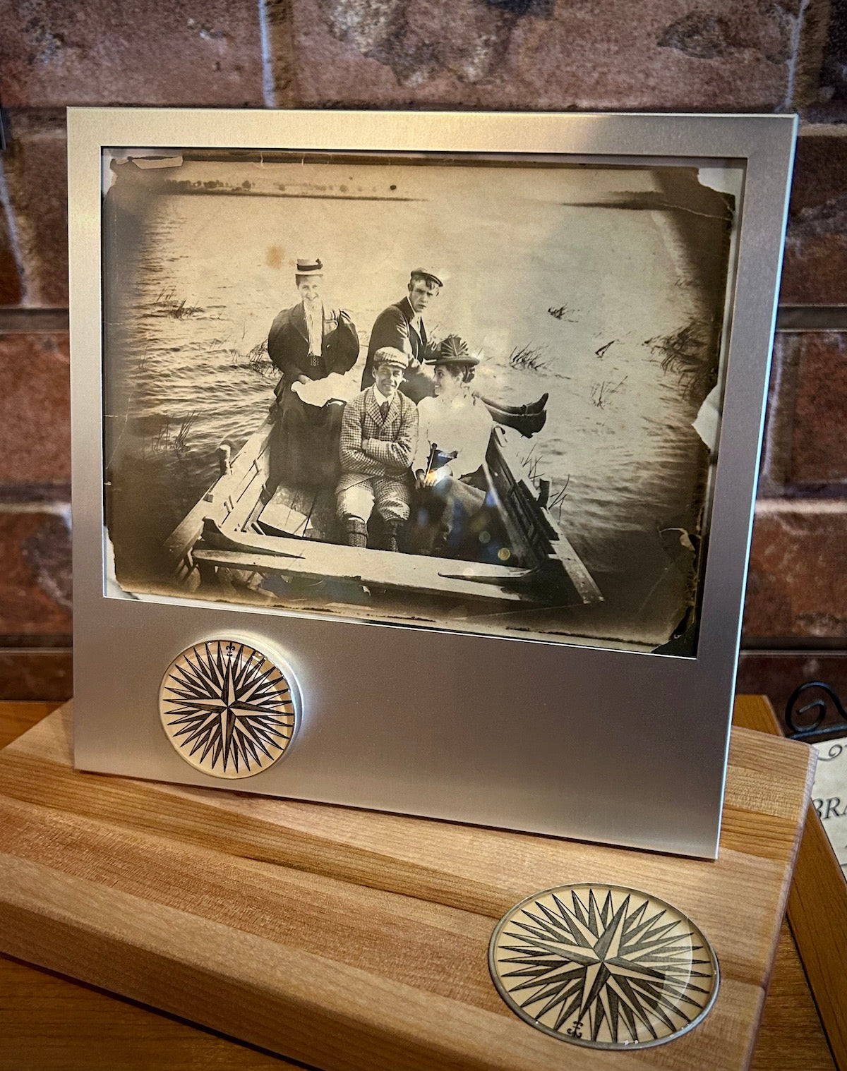 Compass Rose Brushed Aluminum Picture Frame
