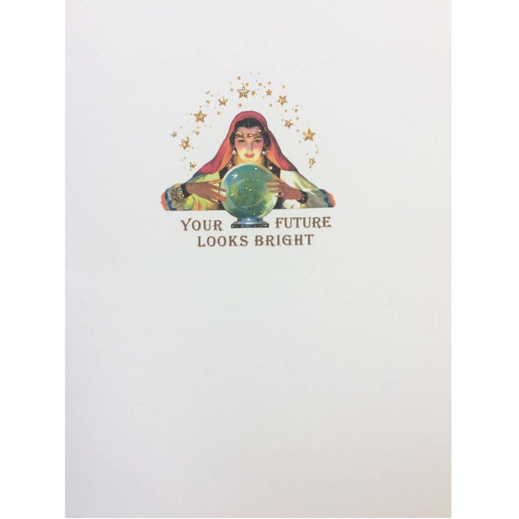 Greeting card, hand embellished with fine glitter. Blank inside. Individually sleeved. Made in USA. Dimensions: 4.2 w x 5.5 h.