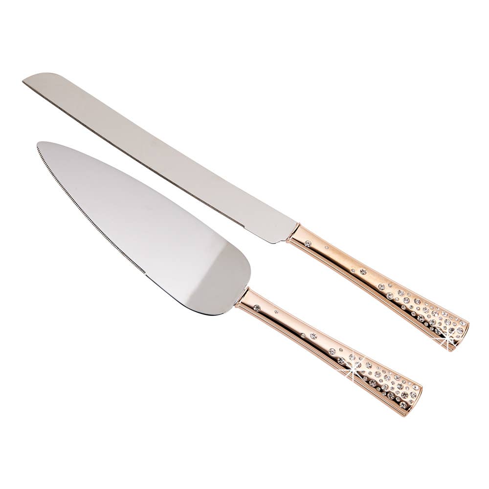 "Galaxy" Rose Gold with Crystals Cake Knife & Server Set