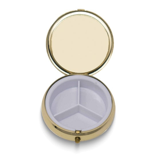 This gold-tone pillbox is the perfect chic solution for storing pills on the go. The inside lid is even a mirror, making it extra handy. The top lid can be engraved with a monogram, message, medical info, etc.