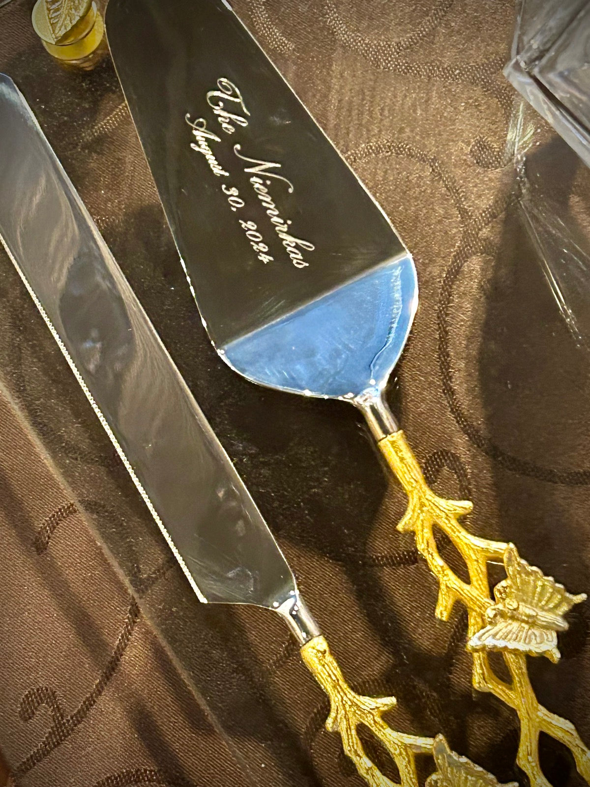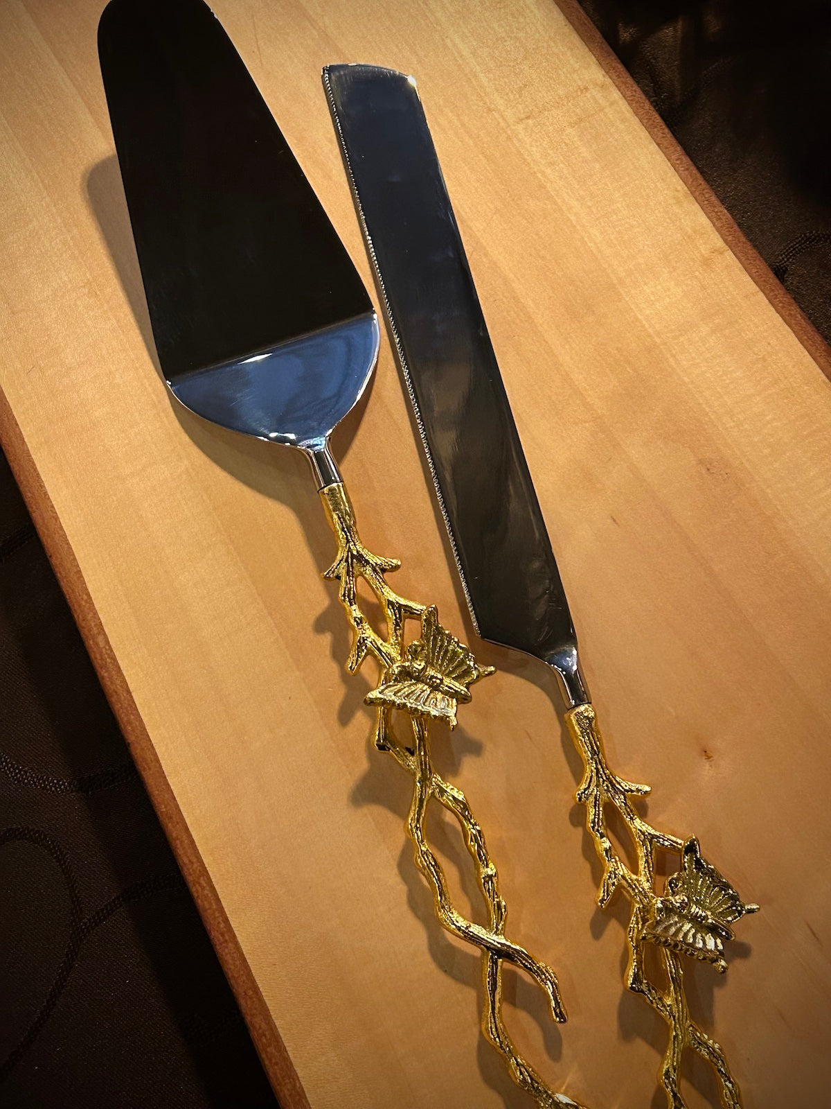 Gold Twig with Butterfly Accent Handle Cake Knife & Server
