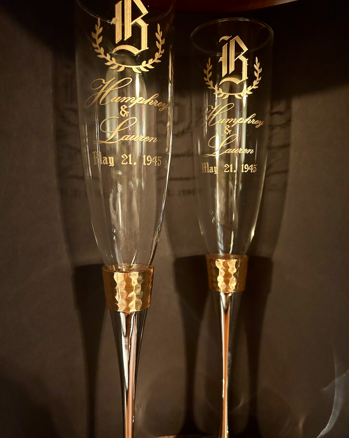 Hammered Gold Band Champagne Flutes