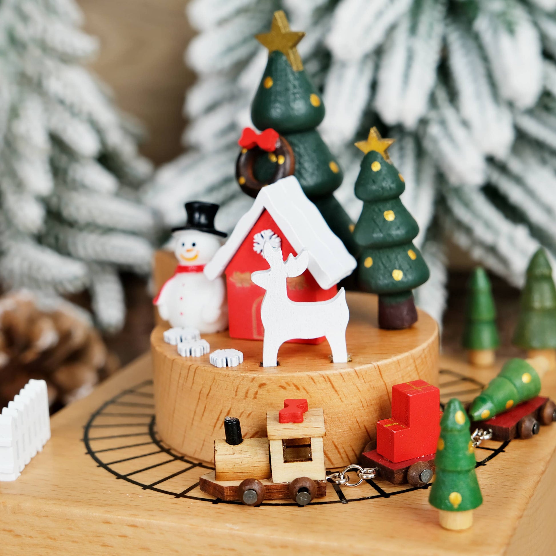Handcrafted Wind-Up Wooden Christmas Train Music Box