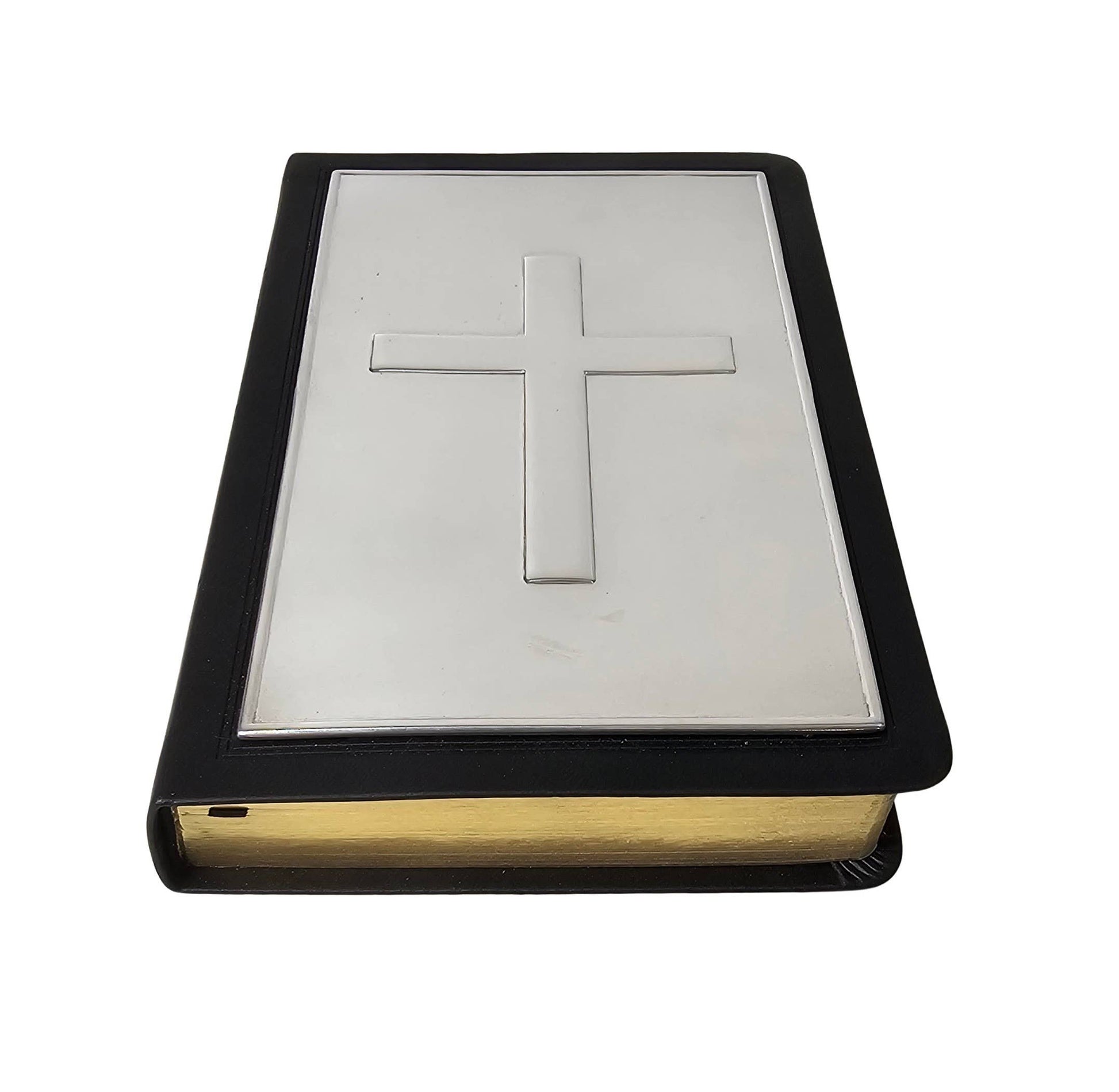 KJV Deluxe Leather Touch Black Bible with Engravable Pewter Plate With Cross
