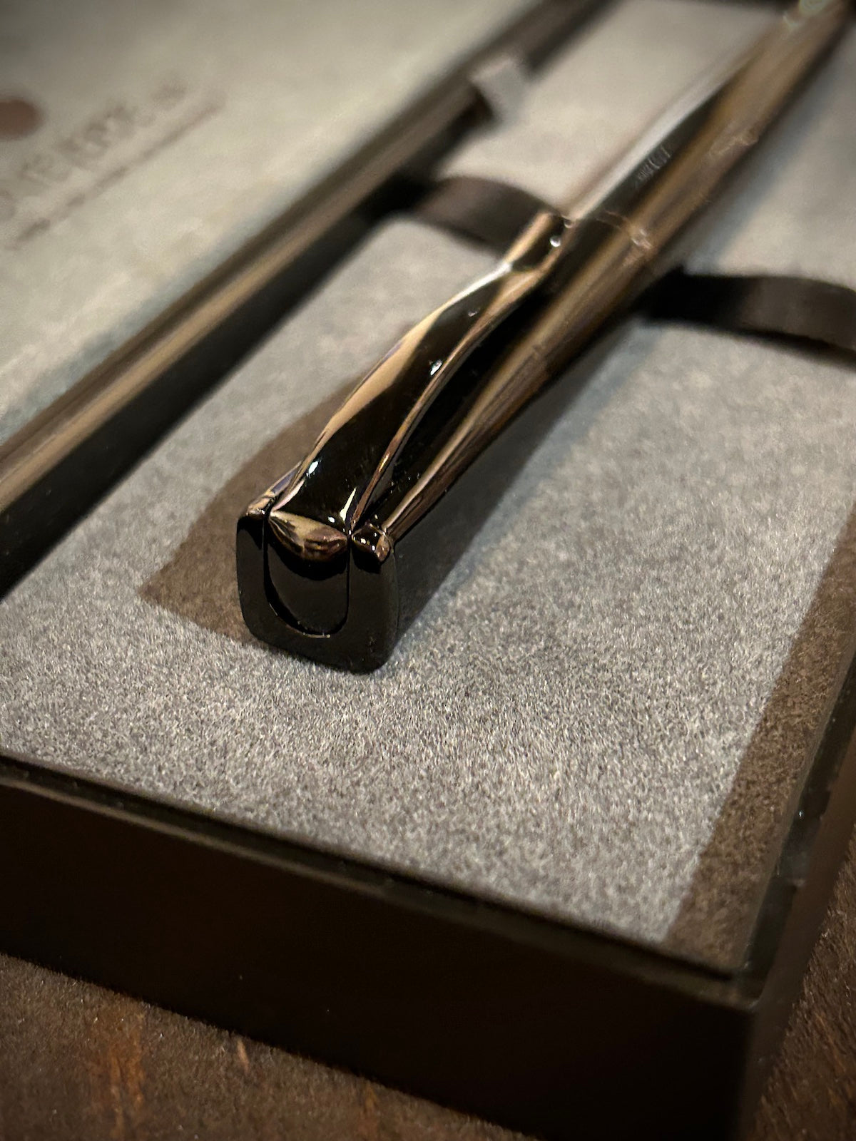 The modern design starts at the top of the cap with a perfect square which then effortlessly transitions into the round barrel. The sleek clip also starts at the top of the cap with a spring action that makes for smooth placement and removal from the pocket.