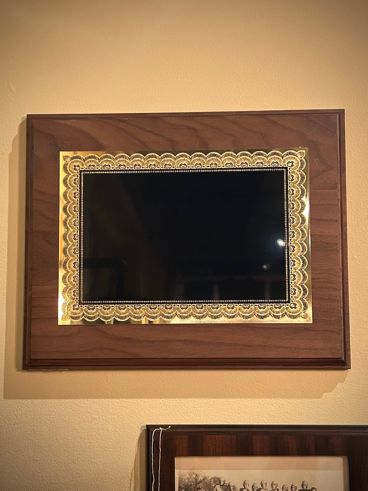 This plaque will be oriented horizontally (to mimic a certificate) by default unless noted otherwise in the "Note to Engraver" field.