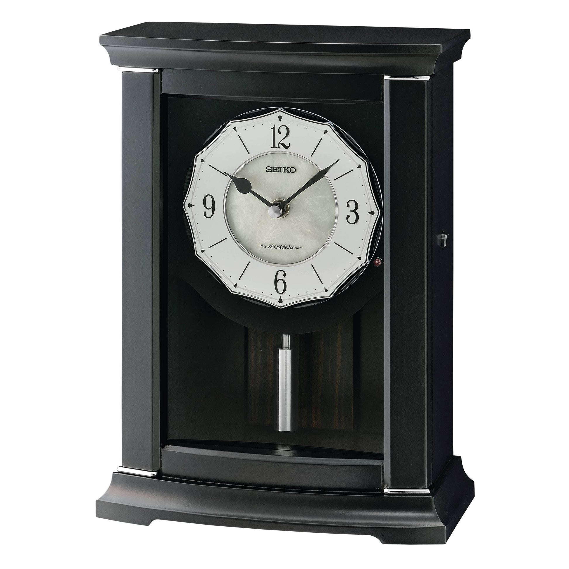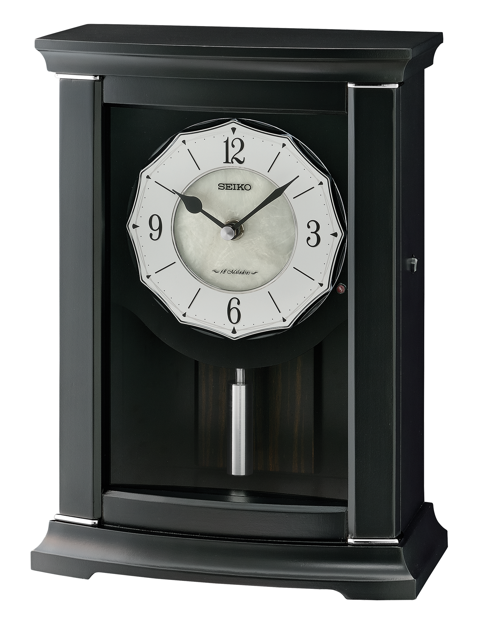 Seiko "Jolie" Mother of Pearl Dial 18 Melodies Black Mantel Clock with Pendulum