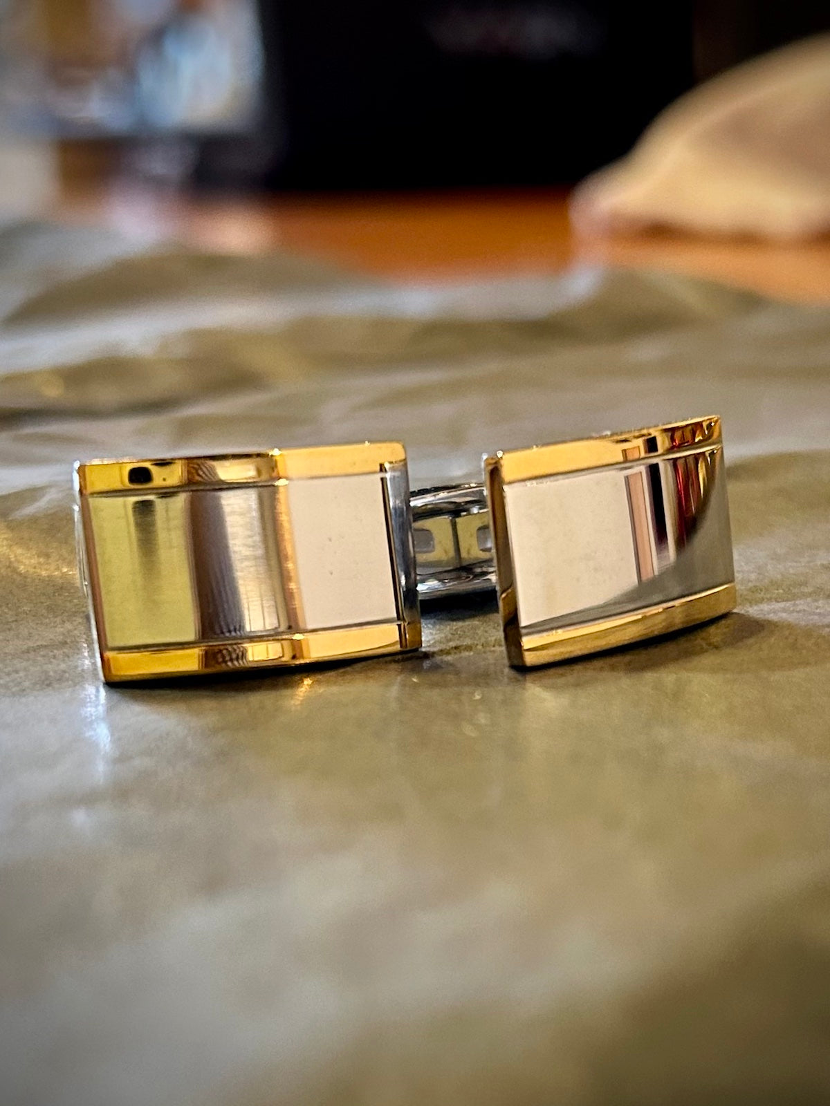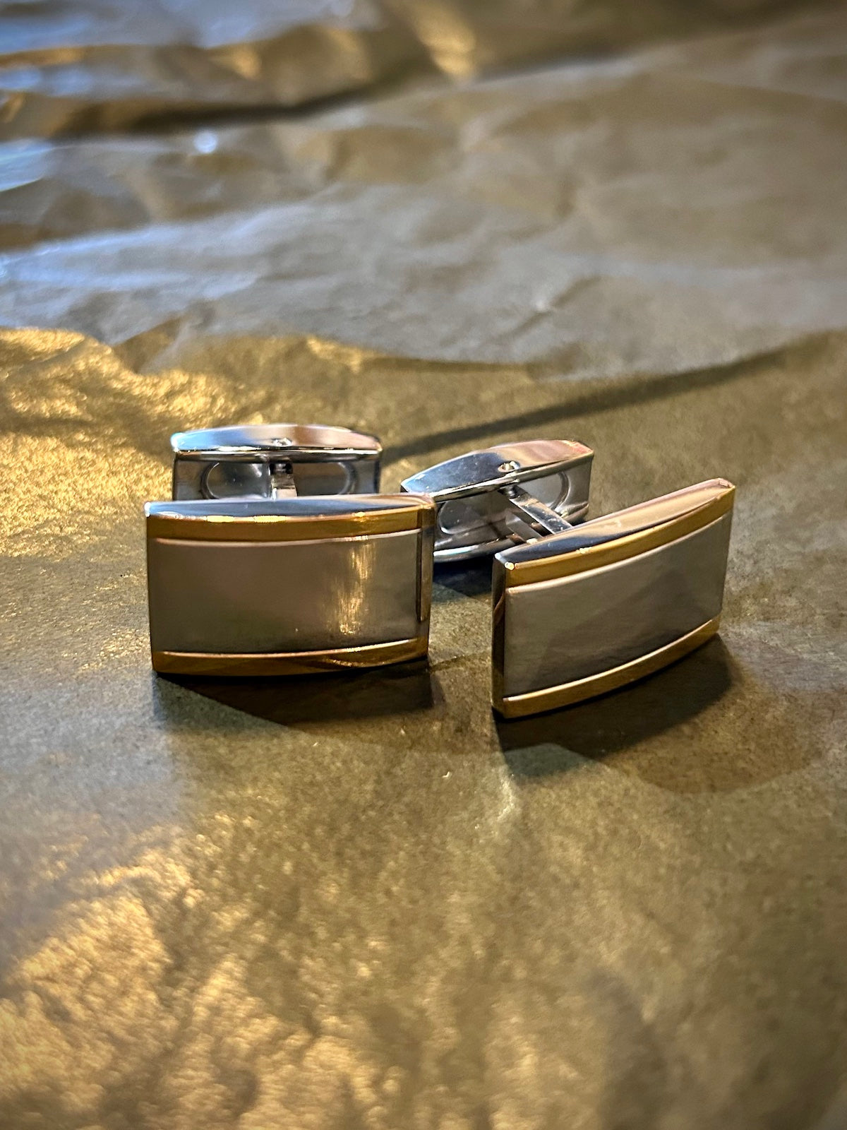 Two Tone Silver with Gold Accent Rectangular Cufflinks