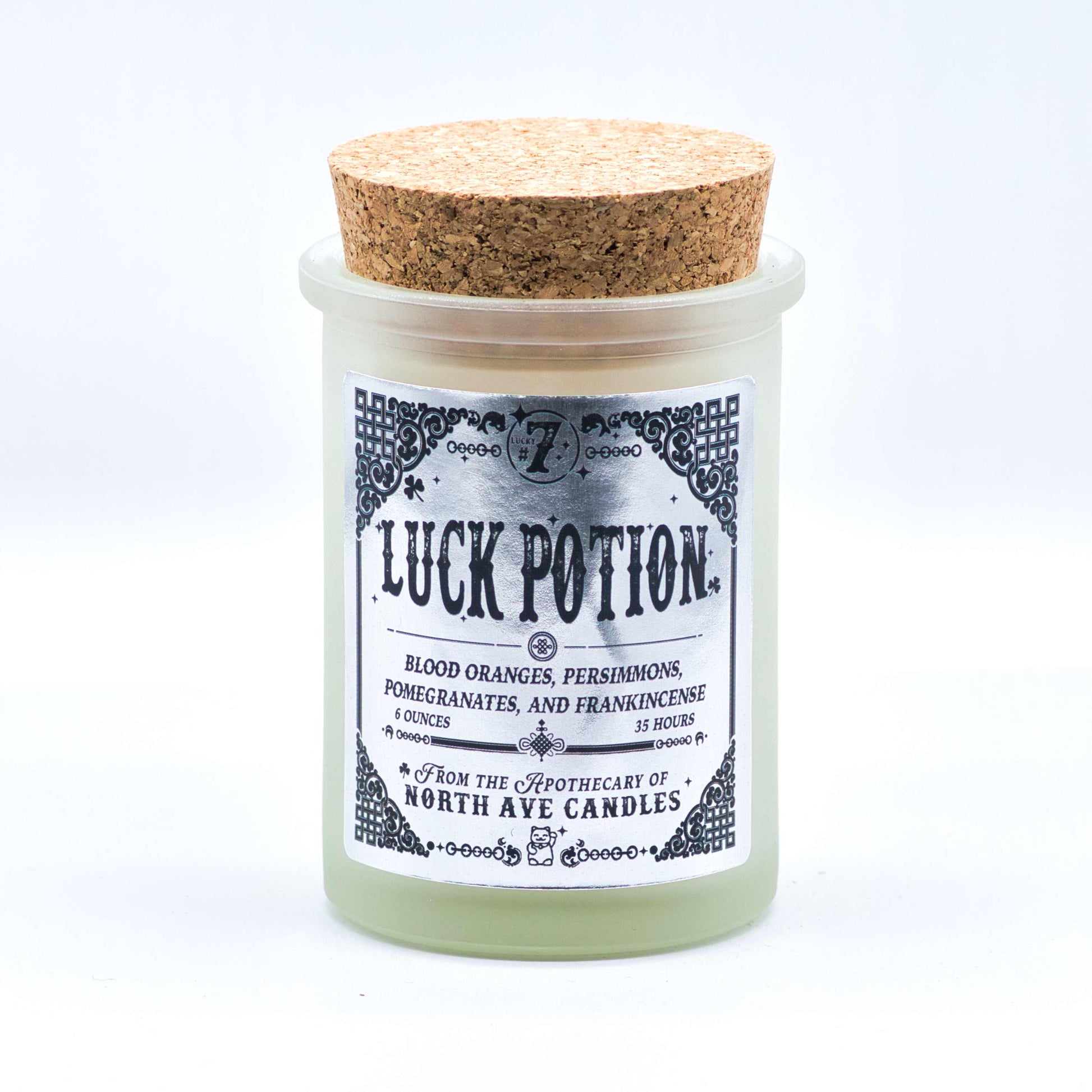 My dear seekers of destiny, behold the Luck Potion candle, a miraculous potion straight from the mystical realms of fortune and fate! Success and prosperity await those who dare to seize the moment. Step right up and claim your fate!