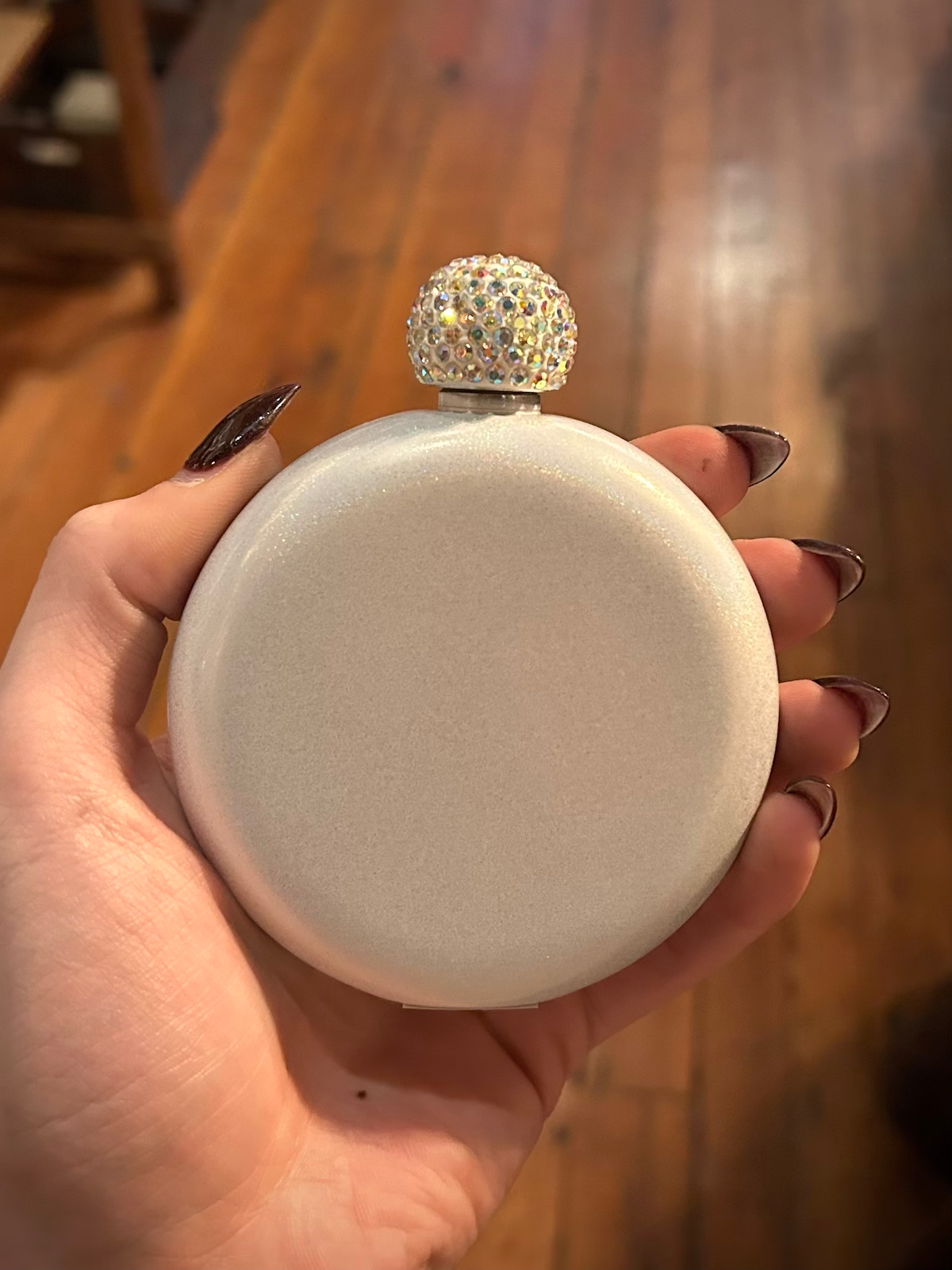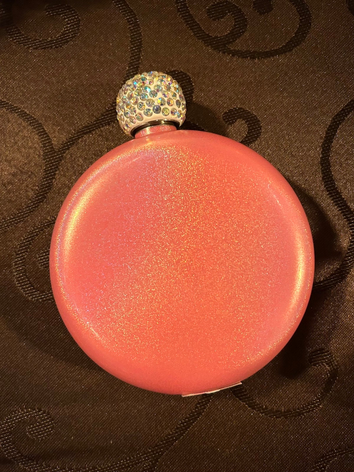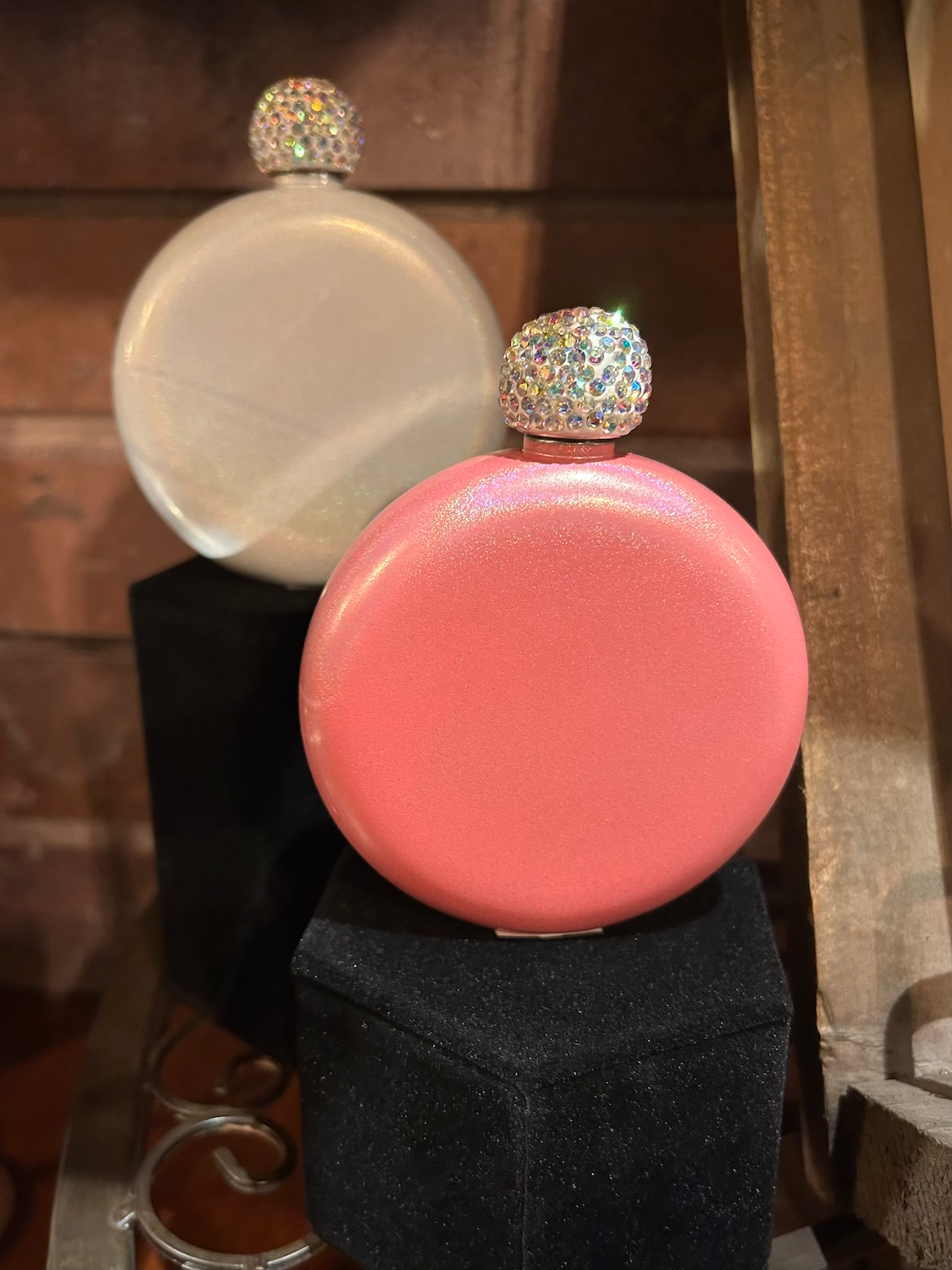 The Crown Jewel Flask is perfect for a day at the park, beach, any festival or your next ladies night out. This flask is finished in a glitter coated paint and features a sparkly rhinestone cap. Enjoy 5 ounces of your favorite beverage any time you like.